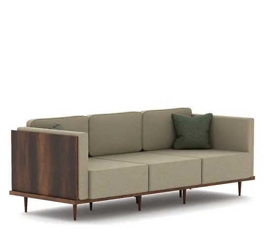 A perfect balance of natural wood and modern comfort - this living room invites you to relax in style. The warm wooden décor by the wall, the cozy sofa with its matching pouf, and the stunning center table create a space where elegance meets serenity. Every piece tells a story of craftsmanship and harmony.